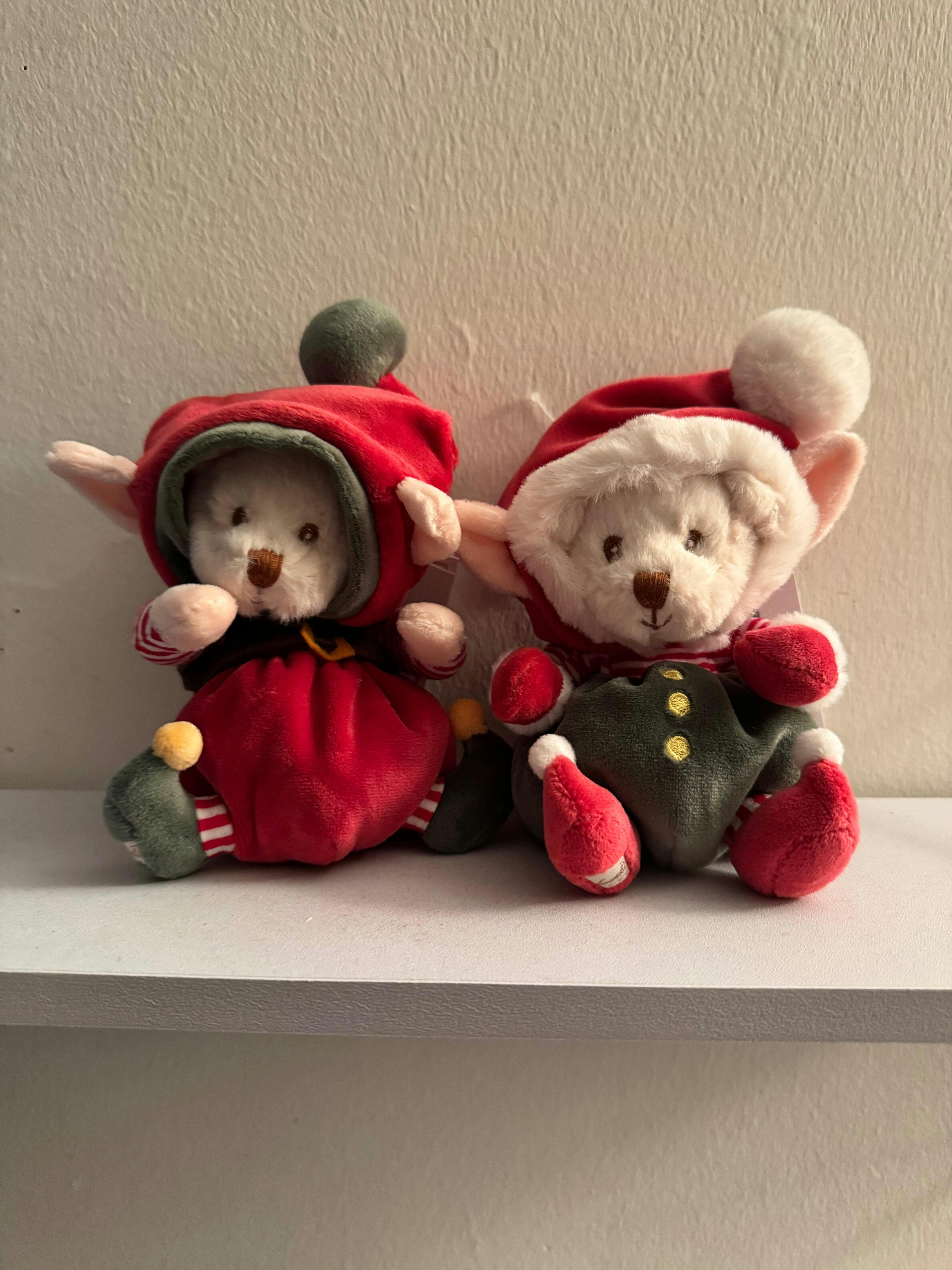 Meet Ziggy Santa's Little Helper, the cheeriest elf in Santa’s workshop and your new cuddle-sidekick for the season. Designed in Sweden by Bukowski Bears, Ziggy is decked out in a plush red elf suit with a jingly, pom‑tipped hat, candy‑stripe sleeves, and a tiny belt buckle for extra festive flair. His snowy‑white face, twinkly embroidered eyes, and velvety mittens and booties make him irresistibly sweet from stocking to sleigh ride.
