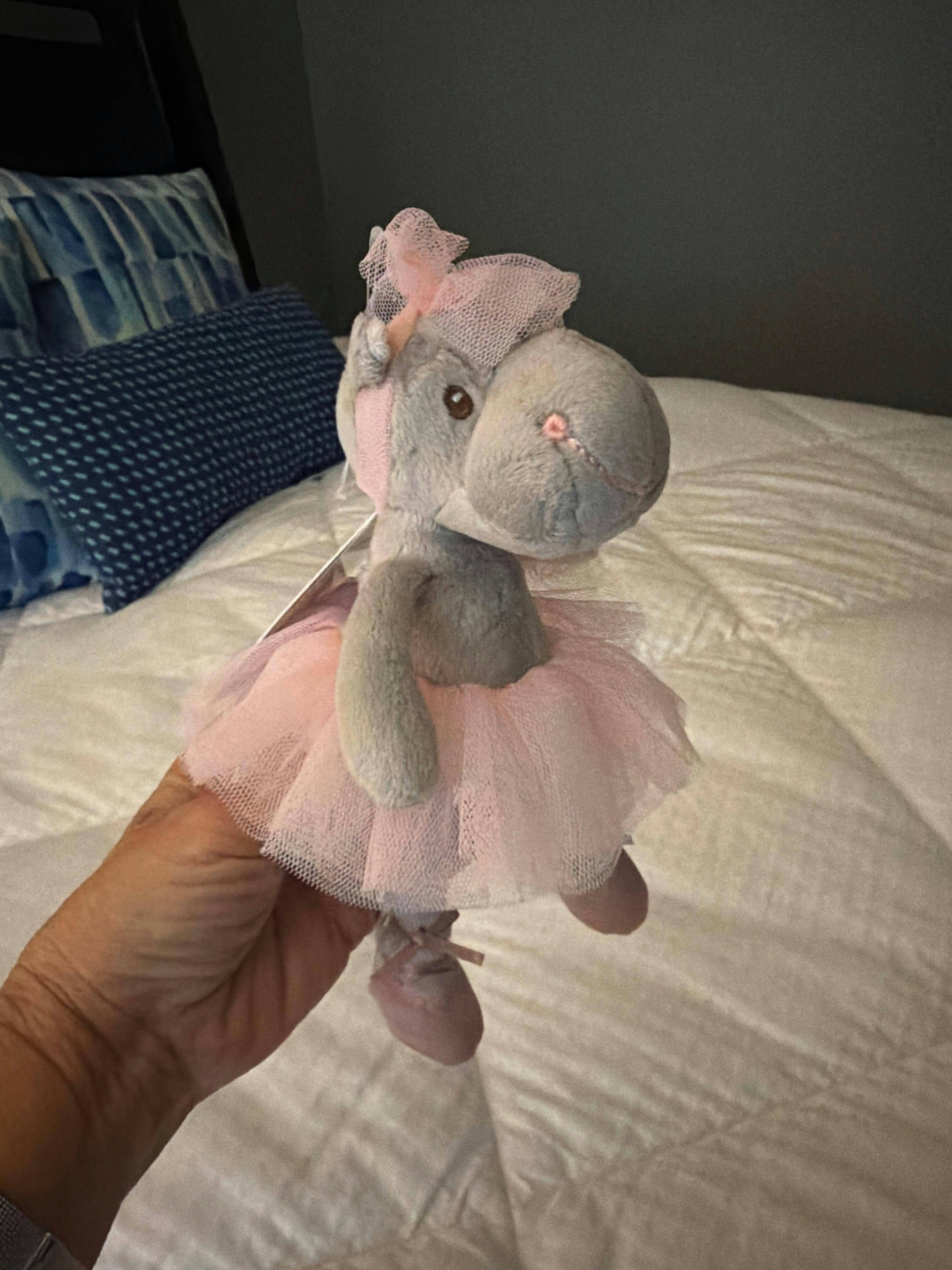 This hippo is light on her feet and loves ballet! Perfectly soft to cuddle, Cute Raffaela makes an amazing snuggle buddy, on and off the stage. The large smile on this cuddly ballerina’s snout and adorable bow on the top of her head warms the heart of her companion with every look. Don’t worry, her tutu won’t get in the way during nap time!